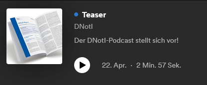 Das DNotI gibt neben dem DNotI-Report auch einen Podcast heraus. Die Folgen sind bei Spotify und bei Apple Podcasts unter dem Suchbegriff „DNotI“ zu finden. Inhaltlich basiert der Podcast auf dem DNotI-Report. Teaser
